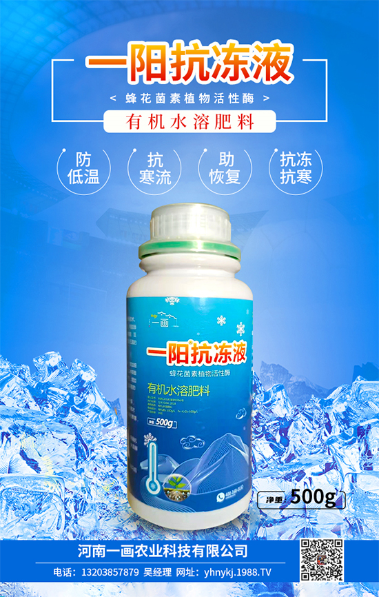 作物防凍施肥建議選擇河南一畫農(nóng)業(yè)科技有限公司【有機(jī)水溶肥料-一陽抗凍液】本品是經(jīng)微生物發(fā)酵濃縮而成的有機(jī)水溶肥料,大部分營(yíng)養(yǎng)成分為菌體代謝產(chǎn)物,能有效提高作物品質(zhì),增加作物產(chǎn)量,是發(fā)展無公害綠色農(nóng)業(yè)的理想產(chǎn)品。