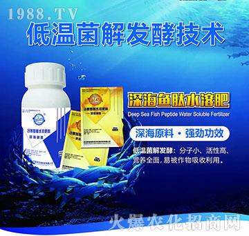 公司產品以美國俄克拉何馬醫(yī)學研究所蛋白生物學博士后研發(fā)成果為技術依托,采用浙江舟山漁場深海新鮮青鱒魚,結合美國低溫菌解發(fā)酵技術和魚蛋白專用發(fā)酵菌種提取深海魚蛋白為主要原料,配以海洋生物萃取的海藻多糖和天然活性生長物質,有機酸等純海洋能源螯合中微量元素加工而成的新型多功能、有機環(huán)保型水溶肥料。