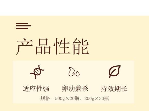 ◆卵幼兼殺:殺卵效果特別優(yōu)異,同時(shí)對(duì)幼若螨也有良好的觸殺作用。雖不能較快地殺死雌成螨,但對(duì)雌成螨有很好的絕育作用。