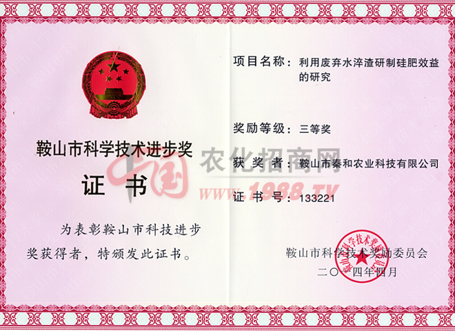 簡介:我廠始建于一九九八年,為東北三省家硅肥(多元復合硅肥)生產(chǎn)企業(yè)。依托鞍鋼集團,立足東北三省,面向全國。具有科技配方,微機控制的自動化生產(chǎn)線,年生產(chǎn)硅肥(多元復合肥)二十萬噸。