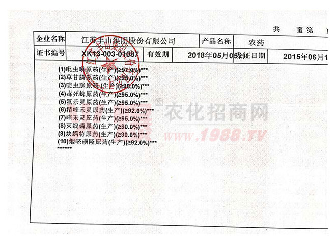 公司始建于1988年9月,集團公司經(jīng)過近30年的奮斗,資產(chǎn)總額達12億元。具有年生產(chǎn)合成原藥3萬噸,加工、復(fù)配制劑5萬噸的生產(chǎn)能力,其中精喹禾靈原藥產(chǎn)能和技術(shù)世界,氟樂靈原藥產(chǎn)能世界,毒死蜱、煙嘧磺隆產(chǎn)能國內(nèi)。2014年公司已成功引進戰(zhàn)略投資者,開始走資本運作之路。
