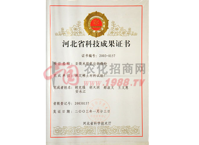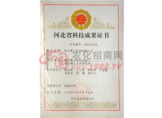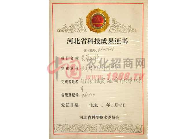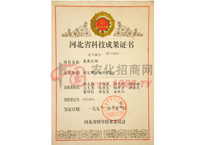 證書名稱:河北省科技成果證書 發(fā)證機構(gòu):河北省科學(xué)技術(shù)廳