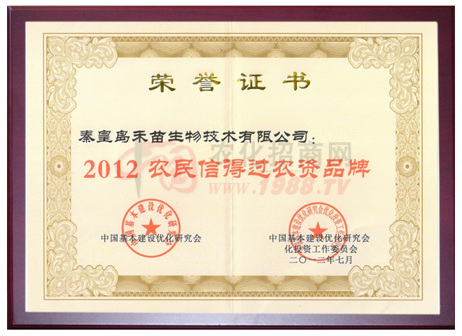 2004年禾苗產(chǎn)品被評為“消費者信得過產(chǎn)品”;