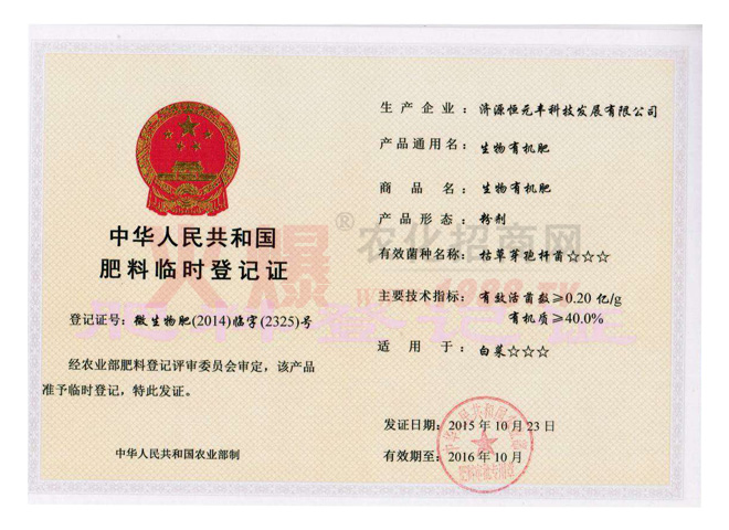 北京恒元豐科技發(fā)展有限公司----座落于農(nóng)業(yè)科學(xué)院內(nèi),是集科研、開發(fā)、生產(chǎn)、銷售、技術(shù)服務(wù)于一體的高科技企業(yè),聚集了農(nóng)藥、化工、植保、營銷等方面的人才,擁有一支高素質(zhì)的員工隊伍,本科以上學(xué)歷占公司人員60%以上,公司依托自身科技優(yōu)勢,人才優(yōu)勢,致力于高效、廣譜、低毒、綠色環(huán)保型農(nóng)藥的開發(fā)研究,加速了科研新成果、新技術(shù)的商品化、市場化,成功研制出具有獨果的無激素植物生長激活劑、高效殺蟲劑,集殺菌以及土壤改良肥、土壤調(diào)理劑、高效復(fù)合(混)肥系列等農(nóng)資產(chǎn)品。