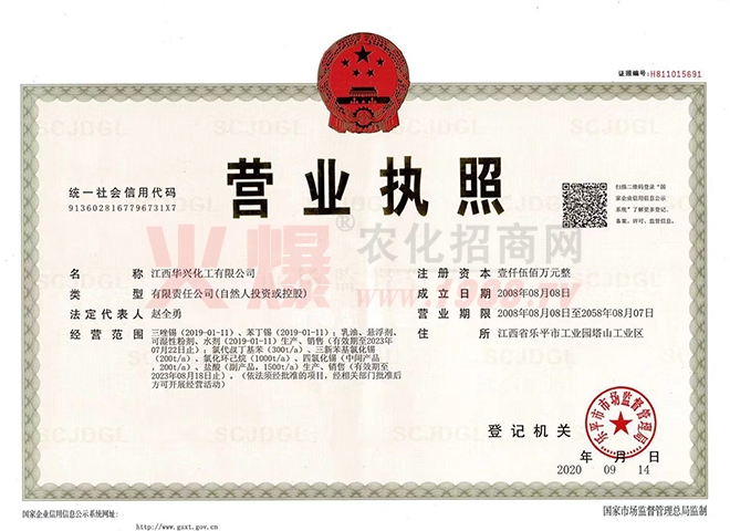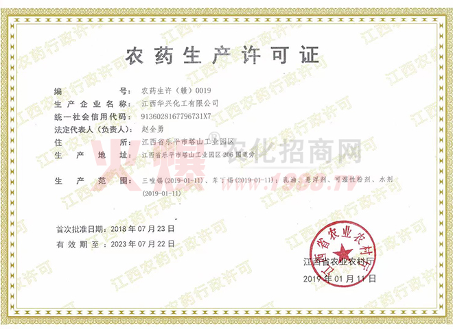 江西華興化工有限公司坐落于中國瓷都城,江西省精細(xì)化工產(chǎn)業(yè)園——樂平市工業(yè)園塔山工業(yè)區(qū),緊靠景鷹高速和206國道,是國家發(fā)改委及農(nóng)業(yè)部定點(diǎn)農(nóng)藥制劑生產(chǎn)企業(yè)。