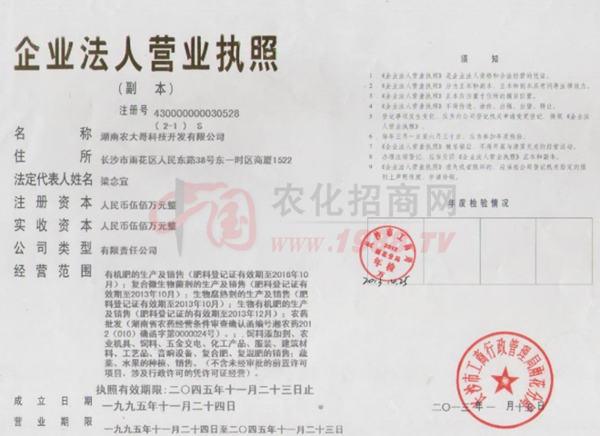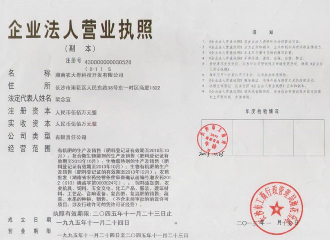 “農(nóng)大哥”牌商標(biāo)經(jīng)國家商標(biāo)局注冊,農(nóng)大哥系列生物制品均經(jīng)國家農(nóng)業(yè)部核準(zhǔn)登記。經(jīng)過全國二十多個省市自治區(qū)試驗示范,結(jié)合測土配方、綜合防治病蟲害和畜禽生態(tài)喂養(yǎng),引導(dǎo)農(nóng)民科學(xué)施肥、科學(xué)用藥和科學(xué)飼養(yǎng),在改良土壤、改善作物品質(zhì)、提高肥料利用率、減少農(nóng)藥使用、提高畜禽產(chǎn)品質(zhì)量和促進農(nóng)民增產(chǎn)增收等方面效果明顯,取得了良好的經(jīng)濟效益、社會效益和生態(tài)效益,受到了廣大農(nóng)民的普遍認(rèn)可和歡迎,并得到了農(nóng)業(yè)部、科技部、湖南省委、省政府及各省市有關(guān)部門的充分肯定和大力支持。