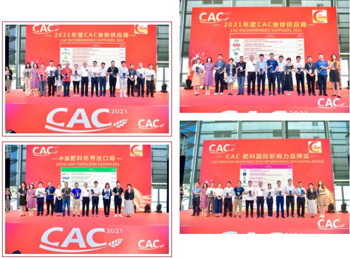 第九屆CAC獎(jiǎng)?lì)C獎(jiǎng)典禮于6月22日下午2:00在上海新國際博覽中心3號(hào)入口廳隆重舉辦。頒獎(jiǎng)典禮上隆重揭曉了肥料優(yōu)質(zhì)出口商、CAC肥料國際影響力品牌獎(jiǎng)、2020海外市場(chǎng)拓展獎(jiǎng)、2021年度CAC推薦供應(yīng)商的獲獎(jiǎng)名單,46家肥料企業(yè)喜獲獎(jiǎng)杯。